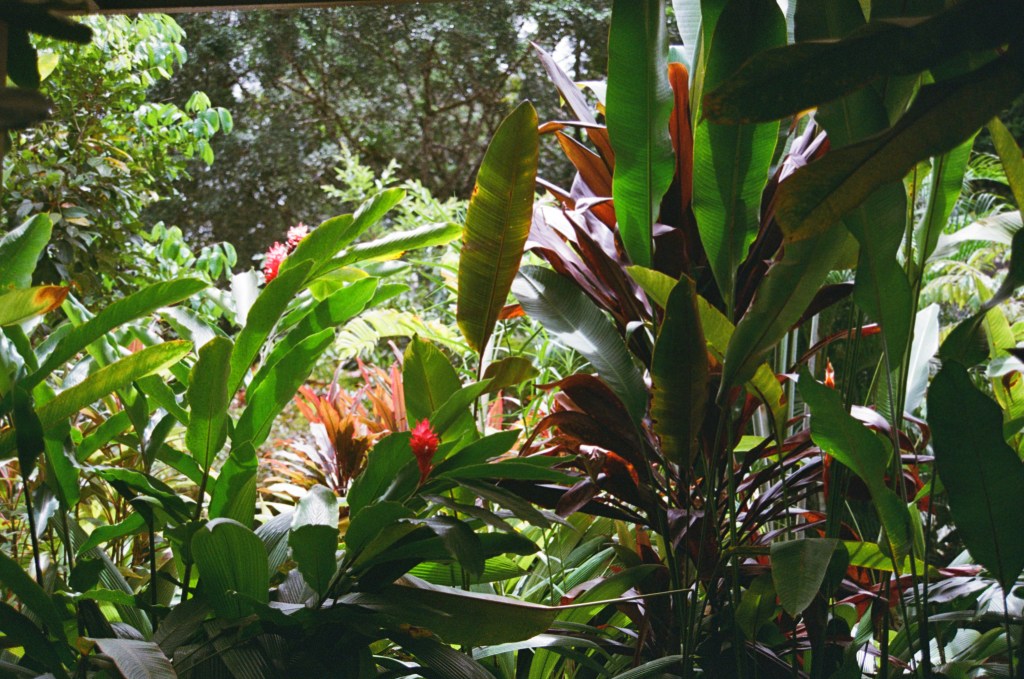 The butterflies are the same orange as the Lantana camara growing in hedges against the horizon with the Codiaeums’ flaming stands and a carpet of Oenothera, opening palely as the sun creeps over.